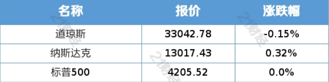 美东时间5月30日,美股三大股指涨跌互现,截至收盘,道指跌0.15%,报33042.78点;标普500指数涨0.002%,报4205.52点;纳指涨0.32%,报13017.43点。