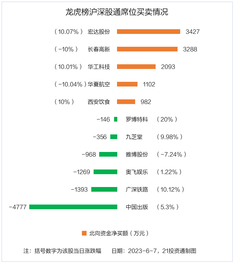 6月7日,北向资金参与龙虎榜中的个股共有11只,合计净买入1981.43万元。其中沪股通净买入1股,净卖出2股,合计净卖出2743.57万元;深股通净买入4股,净卖出4股,合计净买入4725万元。