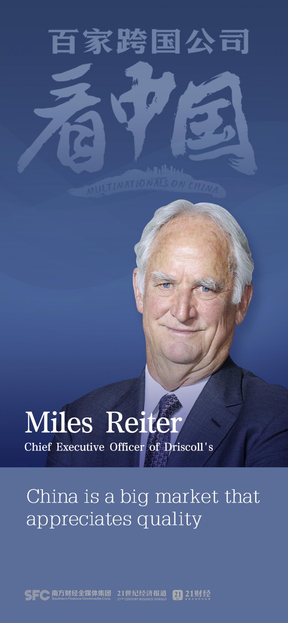 Miles Reiter, chief executive officer of Driscoll’s told Southern Finance Omnimedia reporter in an exclusive interview that it's very clear that China has a quality-oriented culture, and there’s a lot of momentum toward higher quality. "I’m very impressed with what’s been accomplished in this country in that regard," Reiter said.