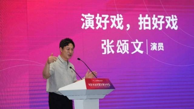 大家上午好!我是演员张颂文,很高兴受到文化强国建设高峰论坛电影高质量发展分论坛的邀请,非常感谢电影局的各位领导以及到场的各位嘉宾。