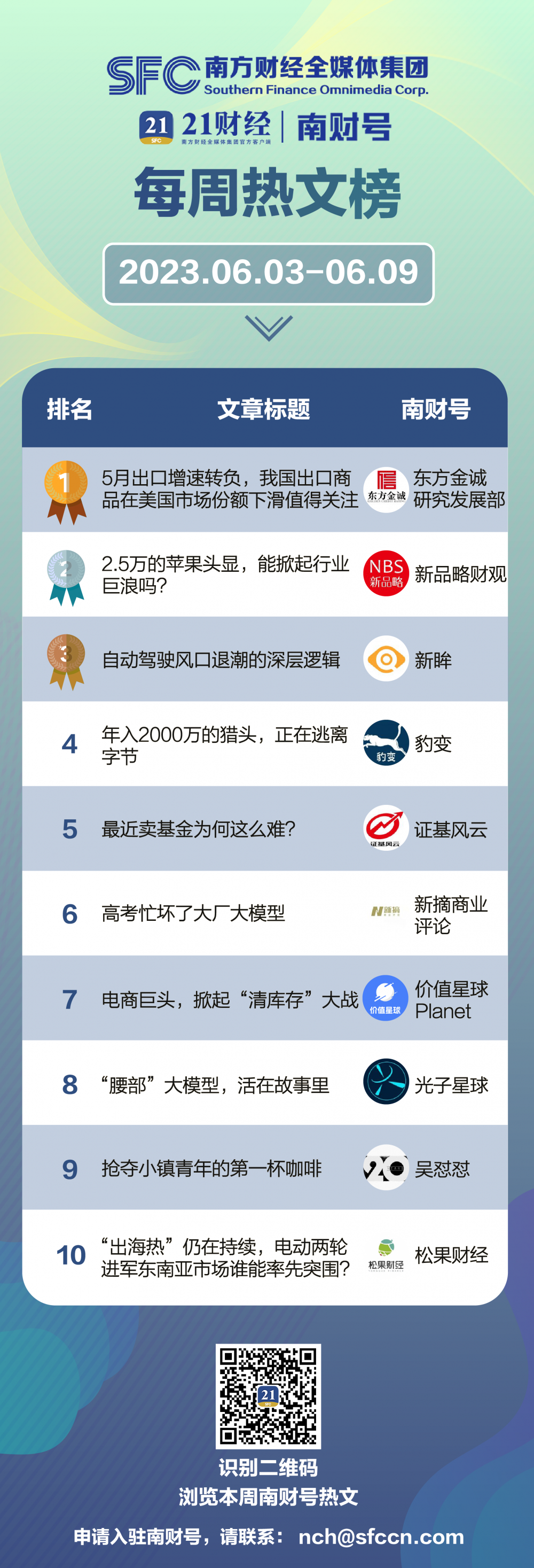 南财号每周热文丨5月出口增速转负,我国出口商品在美国市场份额下滑值得关注