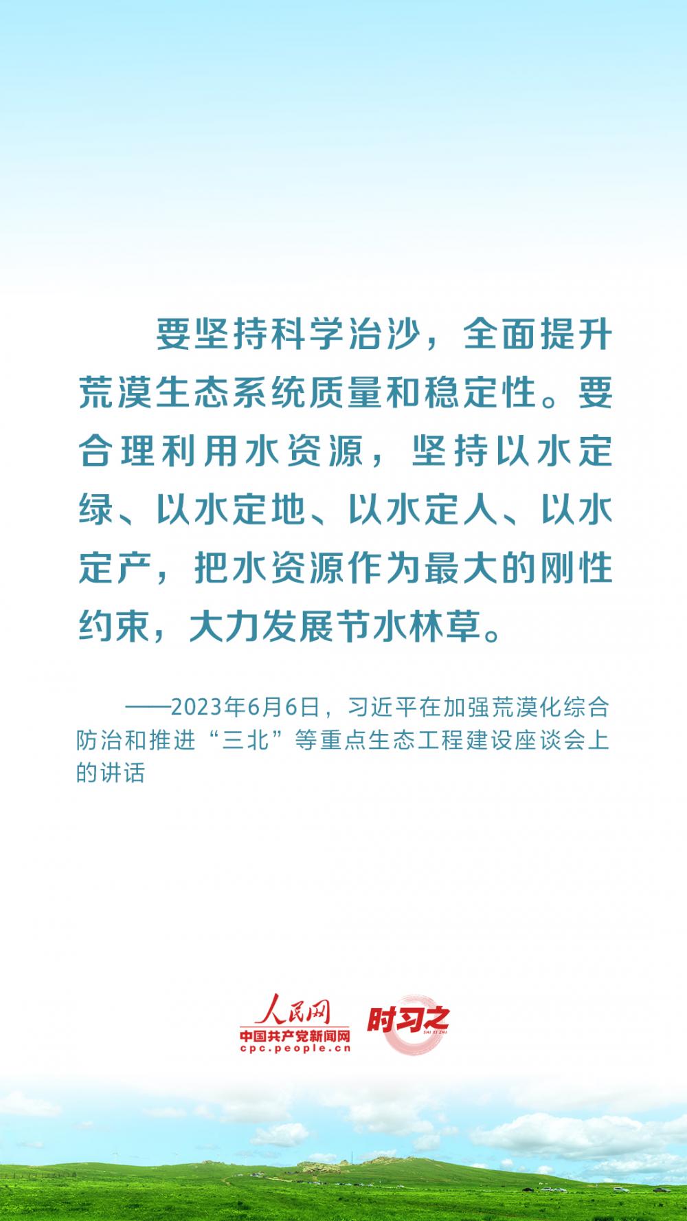 2023年6月5日至6日,中共中央总书记、国家主席、中央军委主席习近平在内蒙古自治区巴彦淖尔市考察,主持召开加强荒漠化综合防治和推进“三北”等重点生态工程建设座谈会并发表重要讲话。座谈会上,习近平对走好中国特色防沙治沙道路提出工作要求。