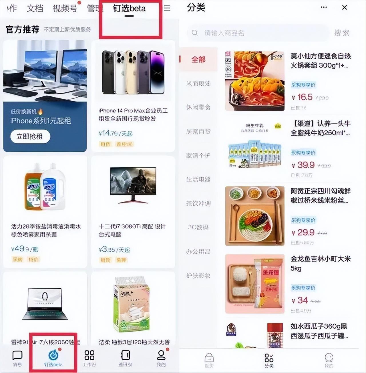 “钉选”运营负责人吴仲亮表示,“虽然乍一看容易被误以为是电商平台,但它和传统电商的思路很不一样,是更偏B2B的企业服务场景。”