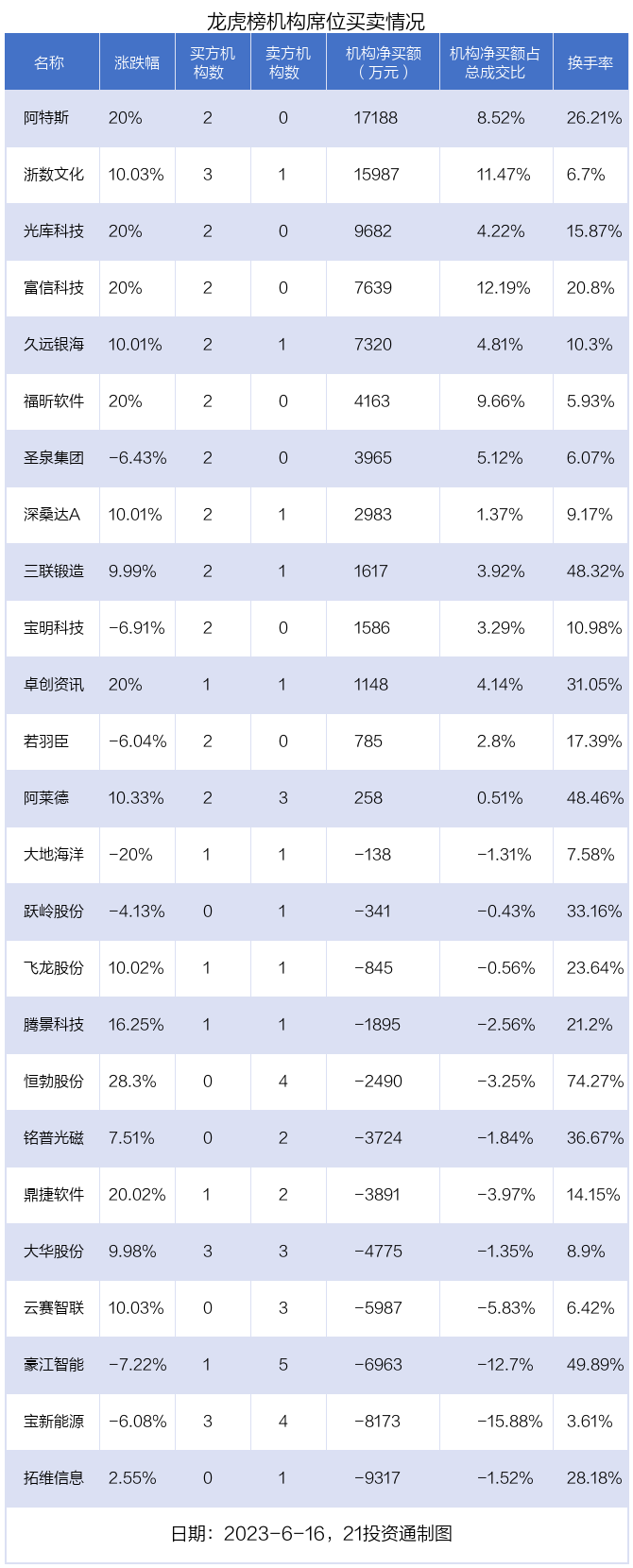 6月16日,25只个股龙虎榜出现了机构的身影,机构合计净买入2.58亿元。具体来看,机构净买入13股,净卖出12股。