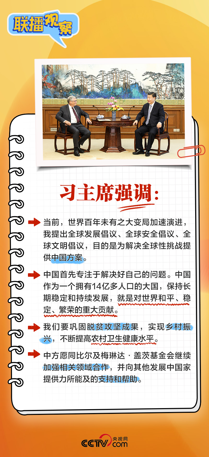 在这次时隔三年多的老友会见中,习近平主席对盖茨及其基金会长期致力于促进全球减贫、卫生、发展及公益慈善事业表示赞赏。