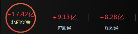 截至收盘,北向资金合计净买入17.42亿元,其中沪股通净买入9.14亿元,深股通净买入8.28亿元。