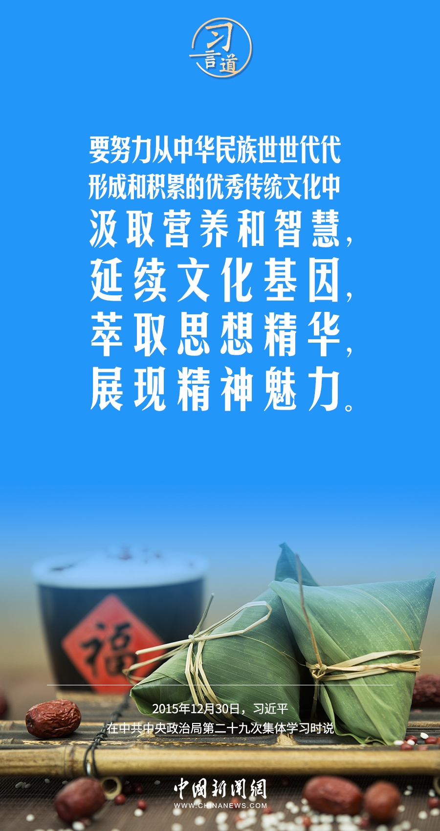 又是一年端午到。端午节凝结着博大精深的中华优秀传统文化。几千年来,中华民族血液中流淌的家国情怀代代相传。习近平总书记曾多次引用屈原的诗句,强调家国情怀。