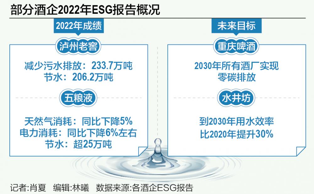泸州老窖就在ESG报告中披露,去年减少污水排放233.7万吨,节水206.2万吨、回收的包装材料723.8吨,蒸汽回收利用工程完成后未来每年约减少二氧化碳排放2000余吨。