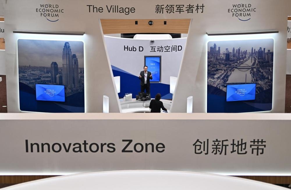 第十四届夏季达沃斯论坛筹备工作就绪。组图均由新华社记者李然摄