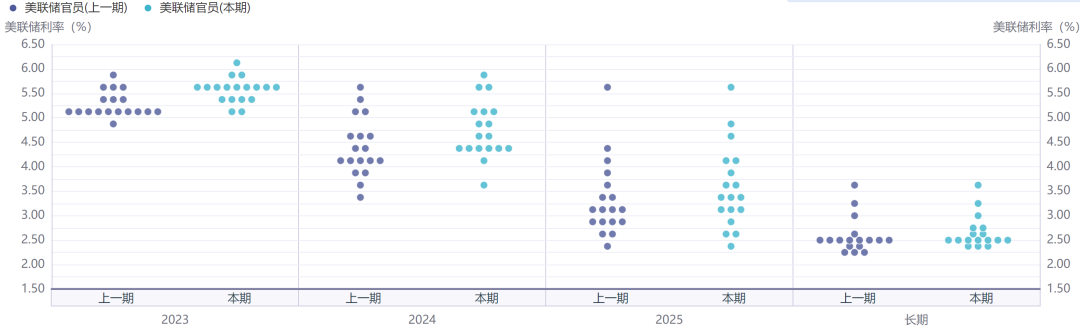 ▍图3:美联储加息预期点阵图(本期:2023/6/14;上一期:2023/3/22)