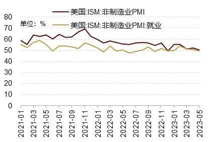▍图6:美国服务业就业PMI已落至荣枯线以下
