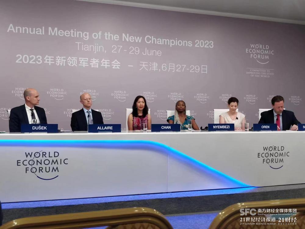 (2023夏季达沃斯论坛新闻发布会现场 郑青亭/摄)