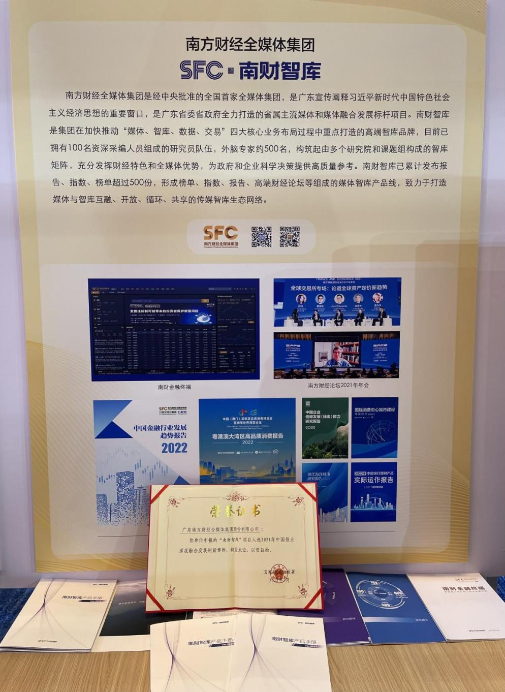 南方财经大湾区数据中心,后更名为“粤港澳大湾区(广东)财经数据中心”,先后列入广东省“十四五”期间重点项目、文化产业高质量发展重点支持项目、首批文化和科技融合示范基地;入选第三届“中国报业深度融合发展创新案例”的南财金融终端,正是南财以“粤港澳大湾区(广东)财经数据中心”为平台持续发力,孵化出的新项目。