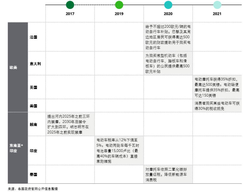 受益于“碳中和”,各国纷纷出台了电动两轮车补贴政策。2017年:越南河内市议会决定在2030年彻底禁止摩托车上路;2019年8月印度电动车相关税率从12%下调至5%,且消费者将获得15万卢比所得税减免。印度提出自2023年起,所有在售的三轮车将全部转型为电动车。自2025年起,所有在售的150CC以下的两轮车将全部为电动车。