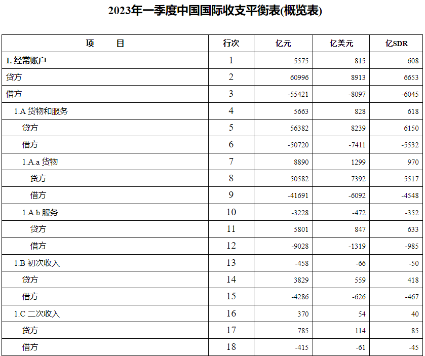 国家外汇管理局公布2023年一季度我国国际收支平衡表