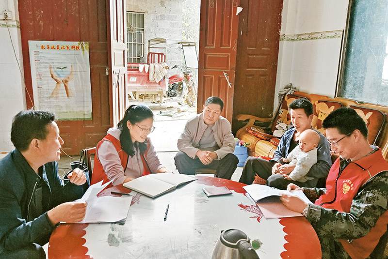 黄文秀研究生毕业后,主动请缨到贫困村任第一书记,把生命奉献给脱贫攻坚事业。习近平总书记强调广大党员干部和青年同志要以黄文秀同志为榜样,不忘初心、牢记使命,勇于担当、甘于奉献,在新时代的长征路上做出新的更大贡献。图为黄文秀(左二)下屯访问贫困户的资料照片。新华社发