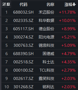 光伏板块今日(7月3日)早盘再度冲高。相关指数中,中证光伏产业指数 (931151) 盘中拉升,一度涨近2%。截至发稿,成分股涨多跌少,科华数据涨停,禾迈股份涨近12%,德业股份涨近9%,阳光电源、锦浪科技涨超5%。