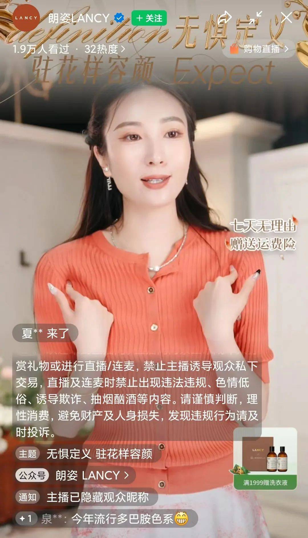 朗姿也是如此,其视频号也是主做老客复购,而抖音等平台的定位则是拉新,因私域老客对品牌的了解和信任,视频号用户的复购率比其他平台高,退货率则比其他平台低,且客单价也很可观,“主卖正价品,不能低于吊牌价的九折”,朗姿新零售负责人告诉《财经故事荟》。