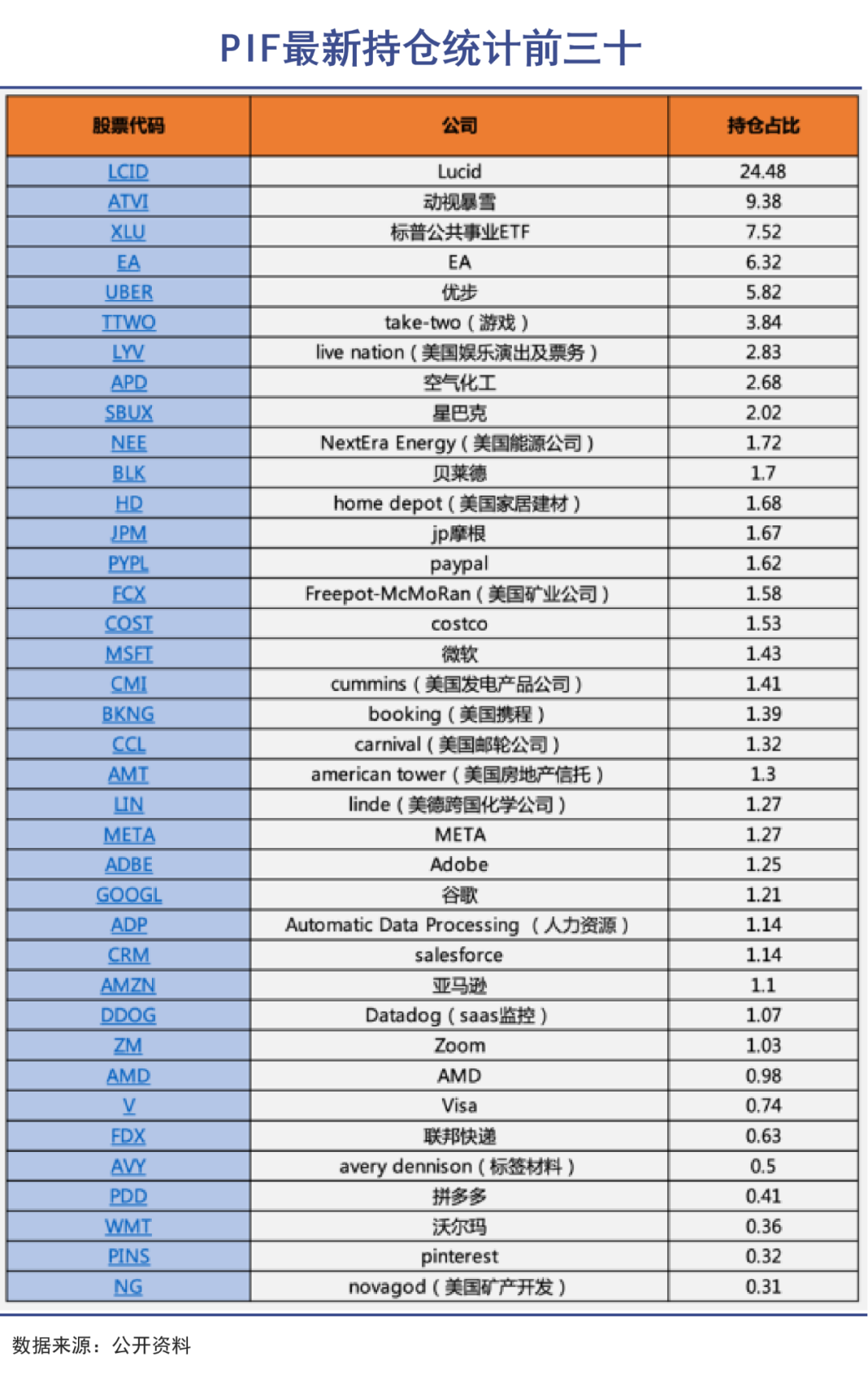 这家美国电动汽车公司一直是PIF持股比例最高的企业,最新持股份额高达60.60%。