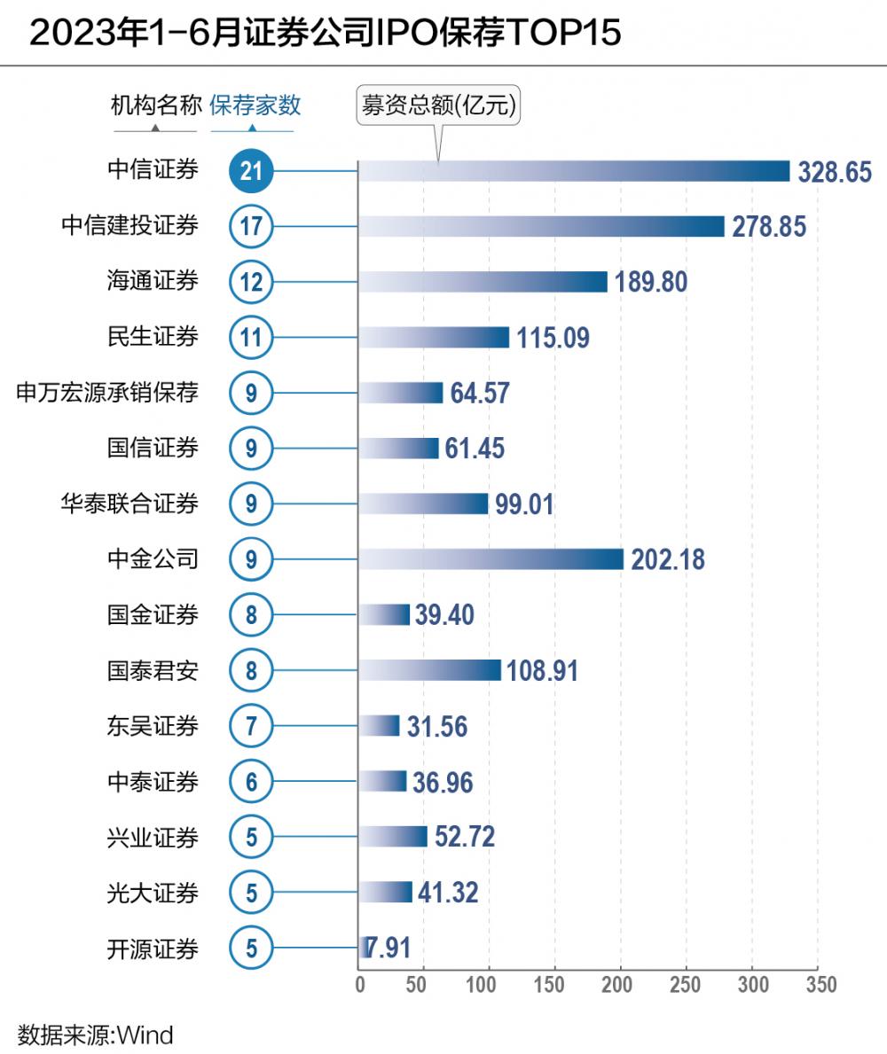 根据WIND数据,今年上半年,共有45家券商参与了173家企业的首发上市保荐。从保荐家数来看,头部券商的集中度略有下降。