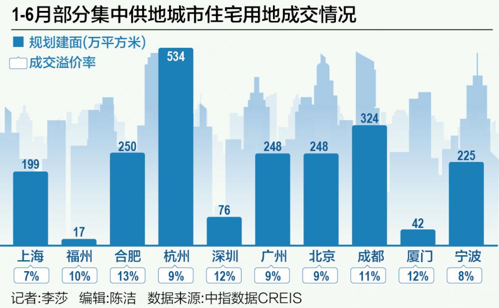 6月30日,北京、深圳、杭州、武汉、厦门等城市进行了土地出让,22个集中供地城市上半年土拍就此收官。