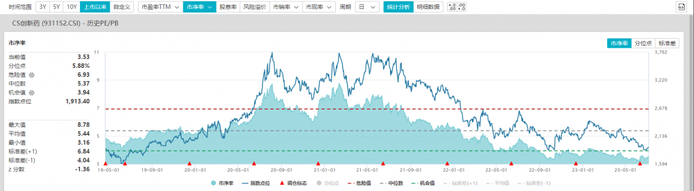 值得注意的是,从估值看来,中证创新药产业指数市净率位于上市以来5.88%的历史分位点,估值处于较低水平。