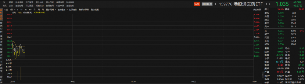 跟踪该指数的港股通医药ETF(159776)早盘下跌,截至发稿,跌幅为0.67%,但盘中持续溢价交易,溢折率为0.19%。