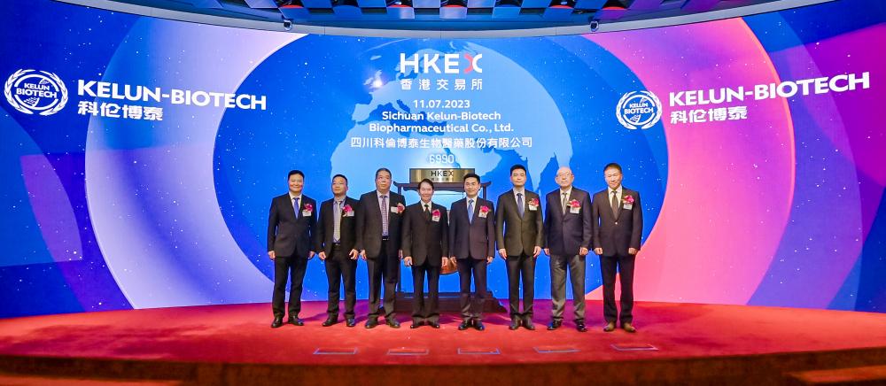 7月11日,四川科伦博泰生物医药股份有限公司于香港联交所主板正式挂牌上市,股份代号为6990.HK。其股票开盘价为60.60港元/股,截止中午12:00,涨幅3.80%,总市值达135.67亿港元。