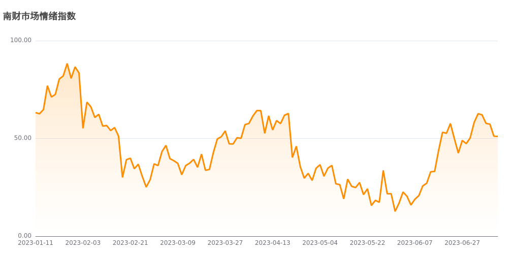 今日南财市场情绪指数为51.0,较前一交易日51.2基本不变,市场投资热度处于中立水平。
