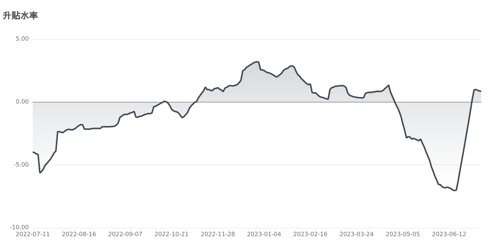 今日该指标值为0.85%,目前该指标处于近一年中立区间,说明投资者对A股持中立情绪。反映期货市场投资者对市场的看法,该指标越高说明投资者认为当前市场较强,越低则说明认为市场相对较弱,因而与上证指数正相关。