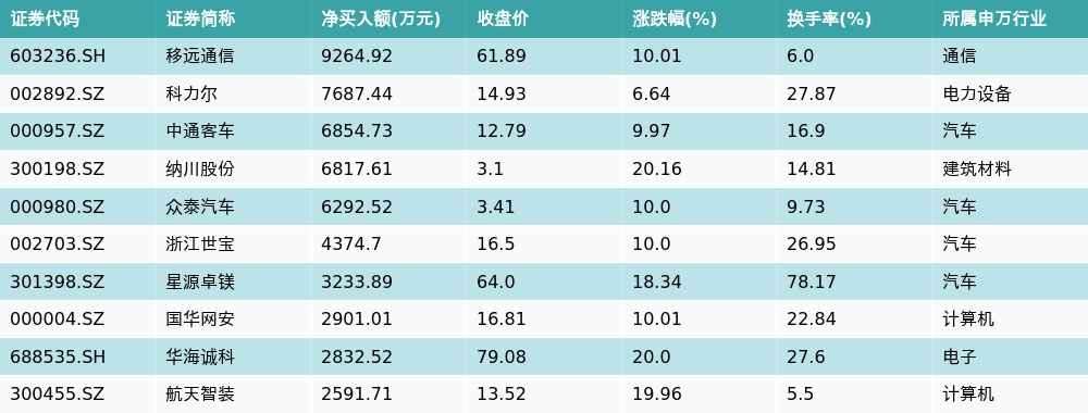 7月11日龙虎榜营业部净买入额前10详情见下表: