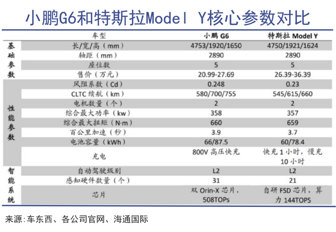 在车型几乎一样的情况下,小鹏G6在每一个配置上均巧妙地优于Model Y,价格还要低近6万元。所以这款新车,明显是在叫板Model Y。