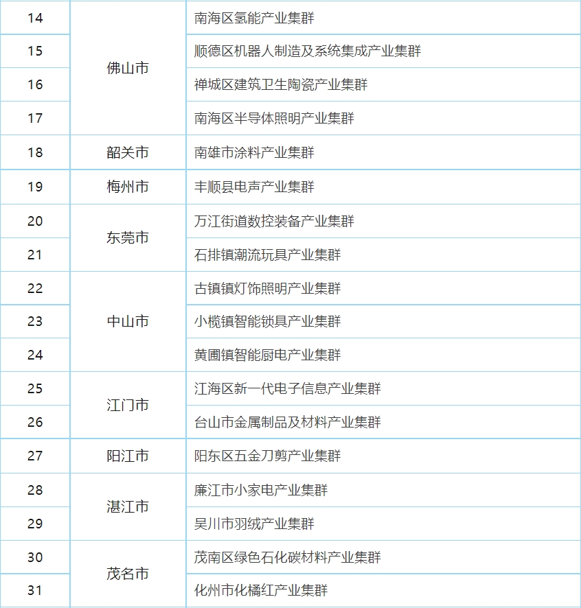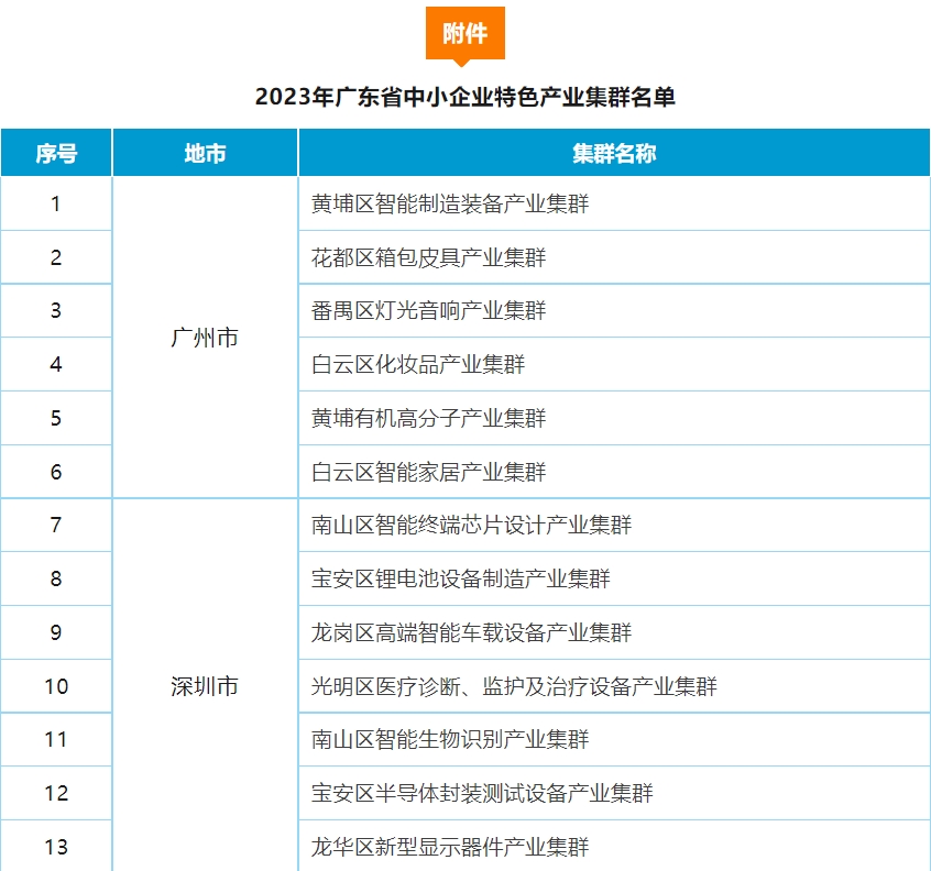 广东省工业和信息化厅关于公布2023年广东省中小企业特色产业集群名单的通告