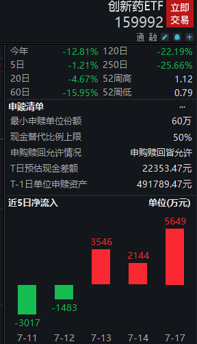 值得注意的是,创新药ETF(159992)近3个交易日连续获资金净流入,累计净流入额超1.1亿元。
