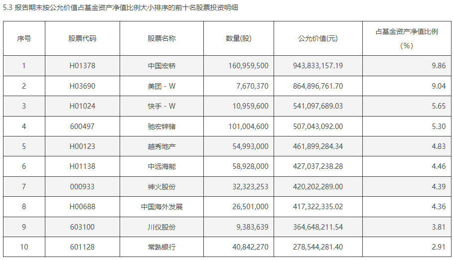 丘栋荣:加仓中国宏桥、快手-W,减持越秀地产、中国海外发展