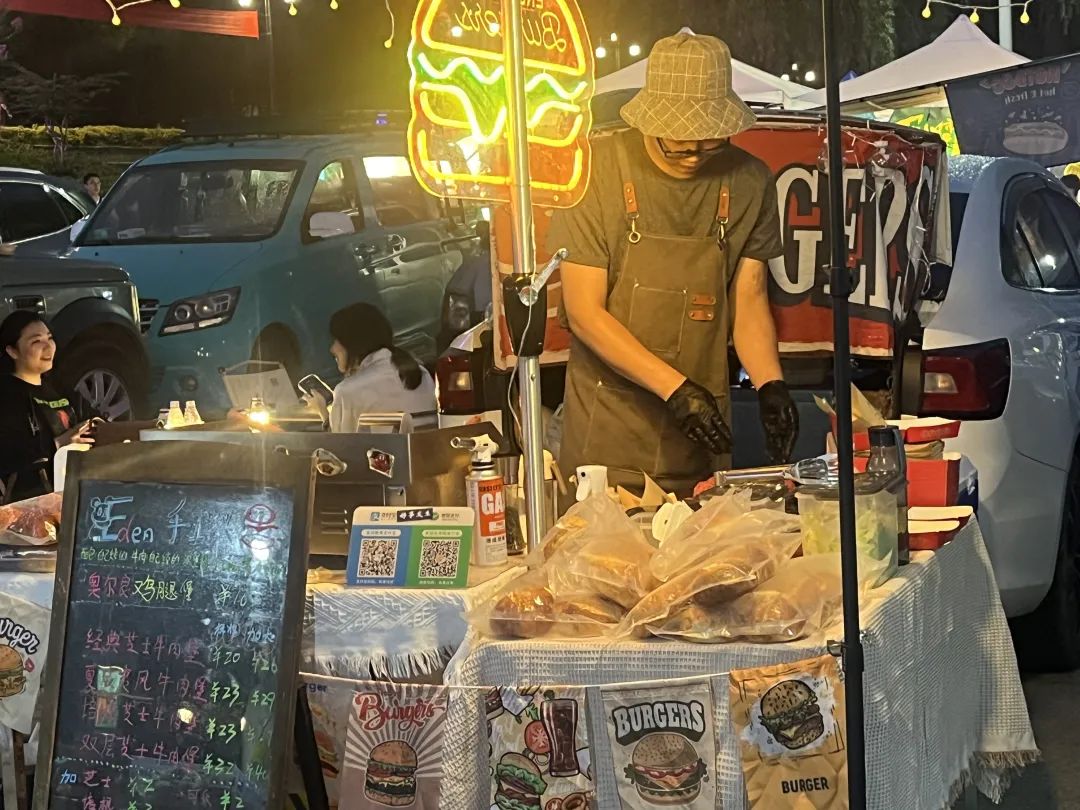 也有摊主在体验市集后,主动降低了对市集的期待。从今年3月份和老公一起开始筹备“路边汉堡”项目的Eden,先后尝试在大学城、商圈以及主题市集摆摊,她告诉惊蛰研究所,对于餐饮项目而言,参与市集对提升营收的效果比较有限。