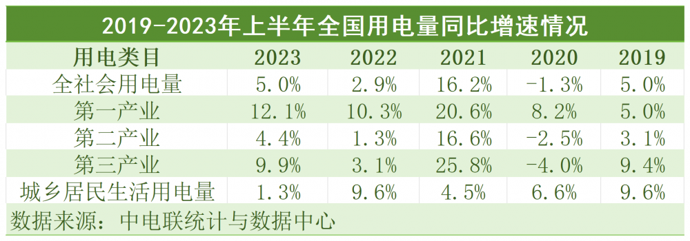中电联发布的《2023年一季度全国电力供需形势分析预测报告》中曾预测,预计今年二季度电力消费增速将明显回升,拉动上半年全社会用电量同比增长6%左右。目前来看,上半年用电增速未达预期。