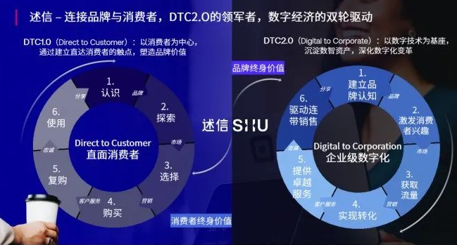在DTC服务商述信科技看来,企业应该围绕“消费者为中心”,搭建整个消费者全生命周期的运营。而实现这一目标,既要强化“消费者连接”,也要完成“企业数字化”,也就是迈向DTC2.0。