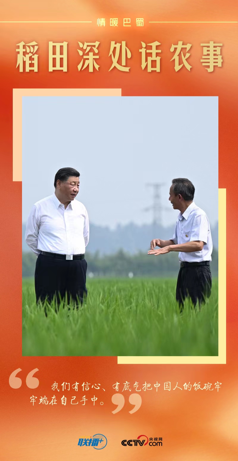远眺广袤田野,总书记思虑深远:“民以食为天。推进农业现代化,既要靠我们中国的农业专家,也要靠我们中国的农民,我们有信心、有底气实现粮食安全的目标。四川要把农业搞好,把粮食生产抓好。”