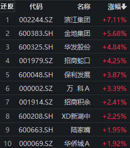 房地产权重股午后集体异动拉升,带动相关板块涨幅进一步扩大。相关指数中,中证内地地产主题指数 (000948)午后涨幅扩大至近4%。值得注意的是,该指数前4大权重股招(招商蛇口)、保(保利发展)、万(万科A)、金(金地集团)午后均出现进一步拉升。截至发稿,金地集团涨超5%,招商蛇口涨超4%,保利发展、万科A涨逾3%。