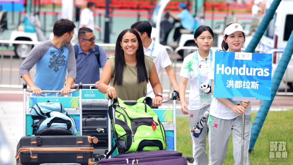 △各国代表团成员相继抵达成都大运村。(总台央视记者魏帮军拍摄)