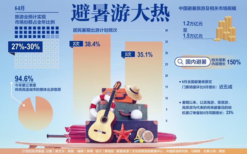 旅游市场复苏、高温天气频发等因素,带来了居民对于避暑出行的巨大需求,从而推动避暑经济在今年进一步走热。文旅部调查数据显示,今年第三季度传统高温城市的整体出游意愿达到94.6%。
