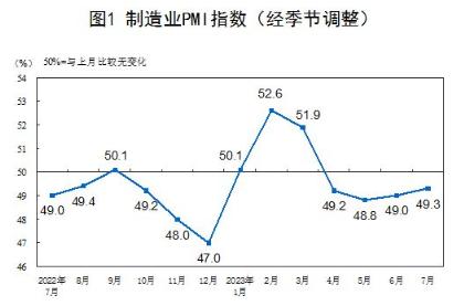7月份,制造业采购经理指数(PMI)为49.3%,比上月上升0.3个百分点,制造业景气水平持续改善。