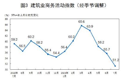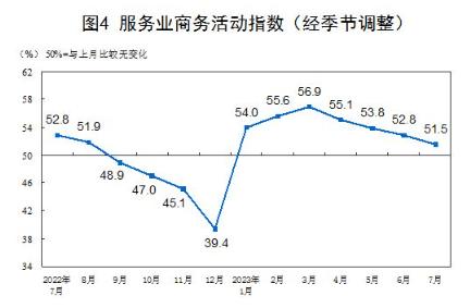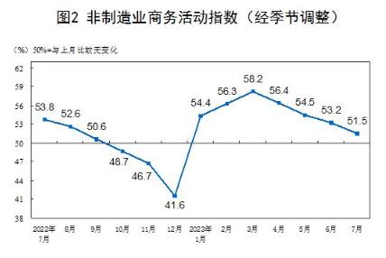7月份,非制造业商务活动指数为51.5%,比上月下降1.7个百分点,仍高于临界点,非制造业继续保持扩张。
