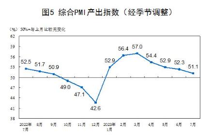 7月份,综合PMI产出指数为51.1%,比上月下降1.2个百分点,仍高于临界点,表明我国企业生产经营总体继续保持扩张。