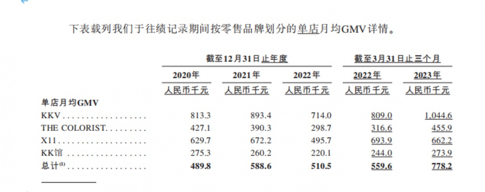 其中,各品牌单店月均GMV均达至较佳水平,KKV的单店月均GMV从往年的81.33万元、89.34万元、71.40万元,提升为今年一季度104.46万元,THE COLORIST单店月均GMV 45.59万元,同为2020以来最佳水平 。