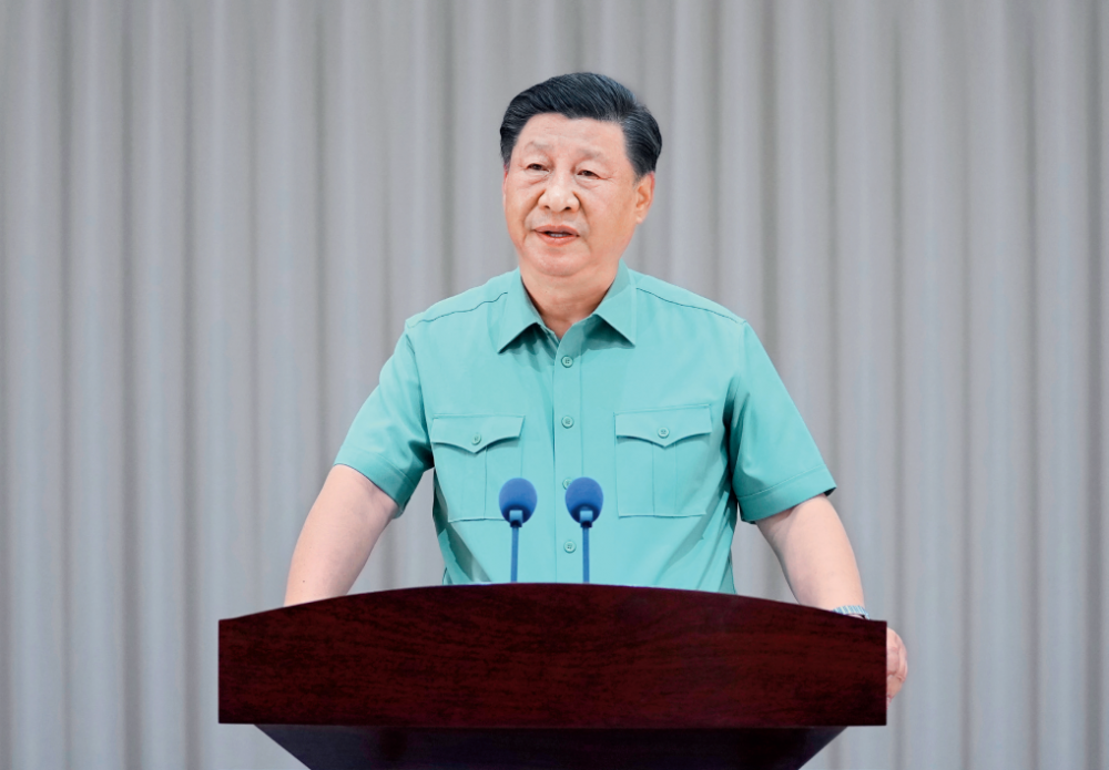 7月6日,中共中央总书记、国家主席、中央军委主席习近平视察东部战区机关,代表党中央和中央军委,向东部战区全体官兵致以诚挚问候。这是习近平发表重要讲话 李刚摄/《瞭望》
