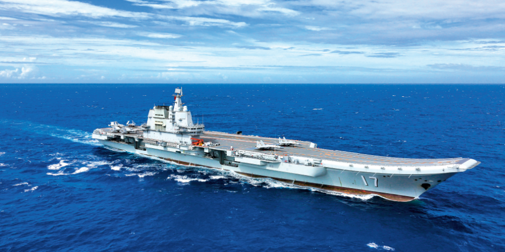 山东舰在南海某海域机动航行(2021年7月24日摄)李刚摄/《瞭望》