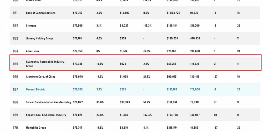 8月2日,美国《财富》杂志公布了2023年世界500强企业排行榜,广汽集团连续十一年上榜,最新排名165位,较2022年上升21位。