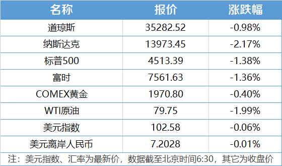 1、美股三大指数集体收跌,道指跌0.98%,纳指跌2.17%,标普500指数跌1.38%,热门科技股普遍下跌,半导体、太阳能板块跌幅居前,美国超导跌近30%,基本回吐上日涨幅。